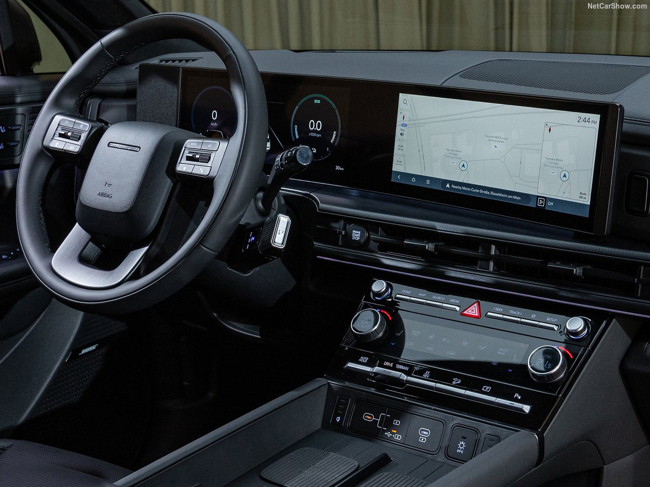 Kabina SANTA FE jest starannie wykończona. Spasowanie i jakość materiałów są na wysokim poziomie. Do dyspozycji kierowcy są dwa duże ekrany umieszczone w jednej linii obok siebie – tworząc jedną, lekko zakrzywioną płaszczyznę. Sterowanie klimatyzacją odbywa się za pomocą pokręteł, na których wyświetlana jest wybrana temperatura. Liczne schowki w tunelu środkowym i na drzwiach pomagają utrzymać porządek we wnętrzu.