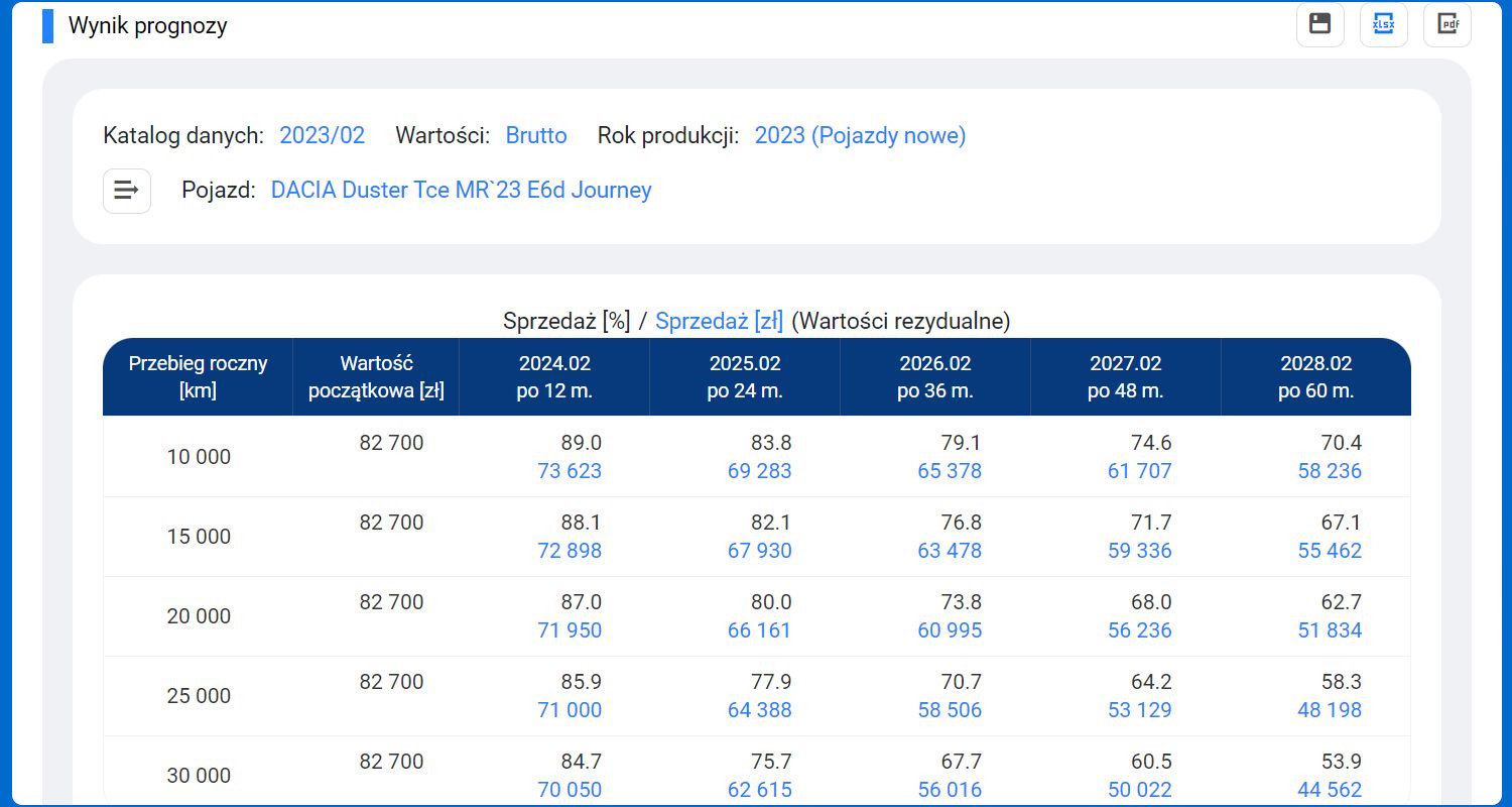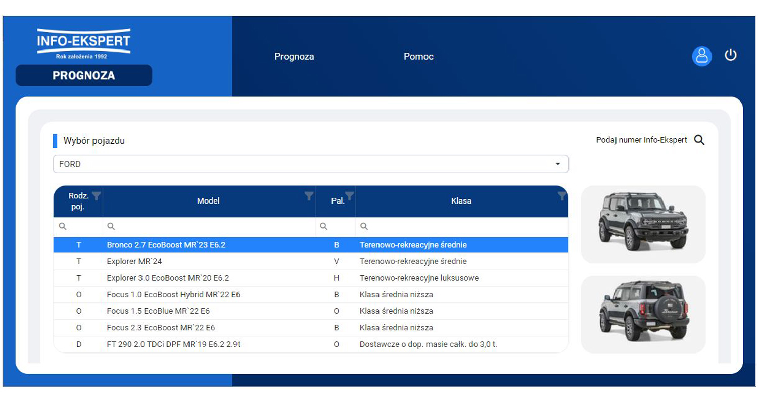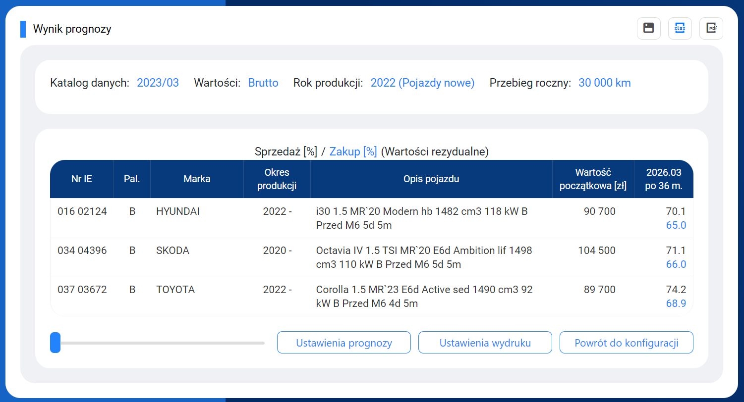 Program Info-Prognoza online to łatwy i wygodny sposób na prognozowanie wartości rezydualnych samochodów osobowych, terenowych i dostawczych. Aplikacja umożliwia analizę wartości resztowych (sprzedaży i zakupu) samochodów nowych oraz używanych na dowolnie wybrany miesiąc w zakresie od 3 do 60 miesięcy.