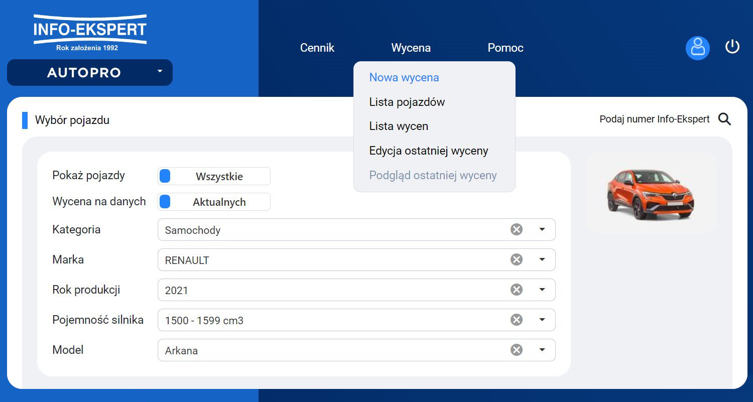 INFO-AUTOPRO-NET to wygodna, intuicyjna aplikacja do wyceny samochodów osobowych, terenowych, dostawczych, ciężarowych, motocykli, przyczep i naczep, przyczep i samochodów kempingowych oraz ciągników rolniczych z ostatnich 19 lat.