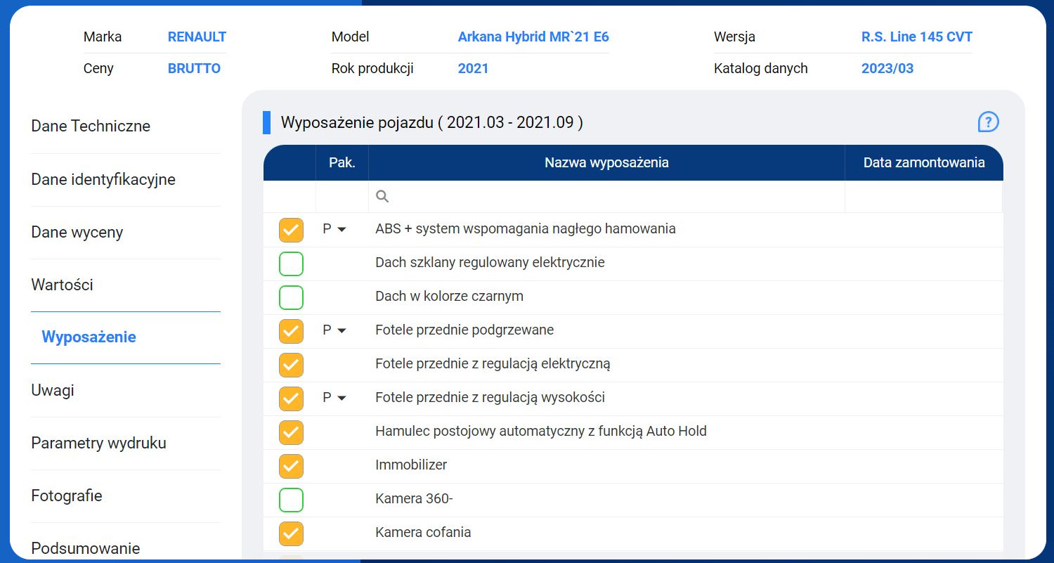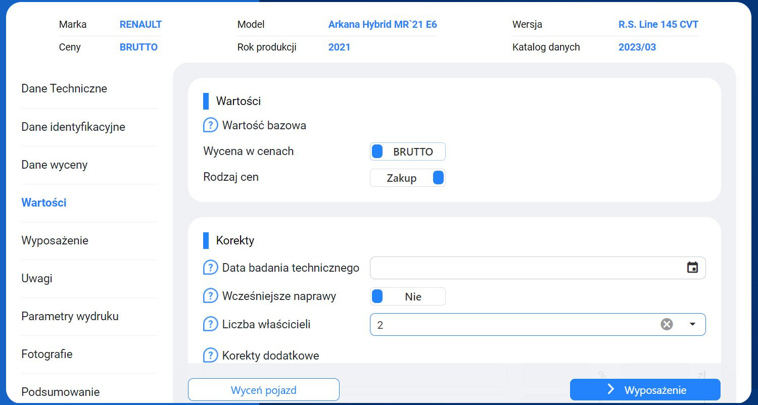 • Możliwość  zastosowania zróżnicowanych korekt wpływających na wartości pojazdu.